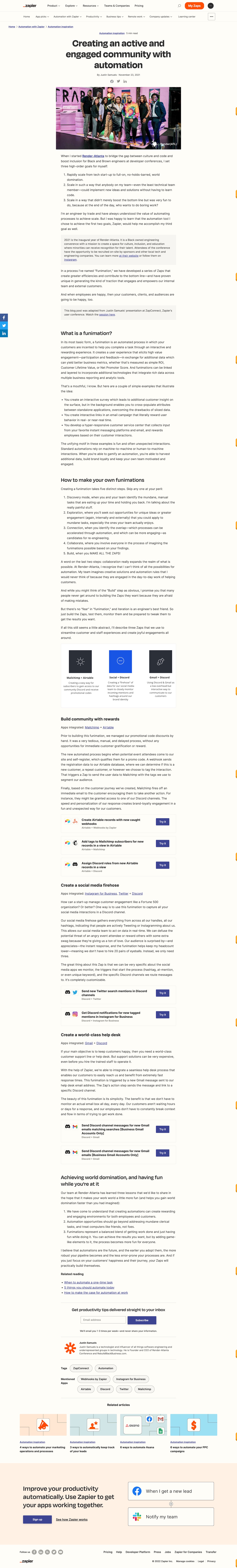 In a process I’ve named “Funimation,” we have developed a series of Zaps that create greater efficiencies and contribute to the bottom line—and have proven unique in generating the kind of traction that engages and empowers our internal team and external customers.