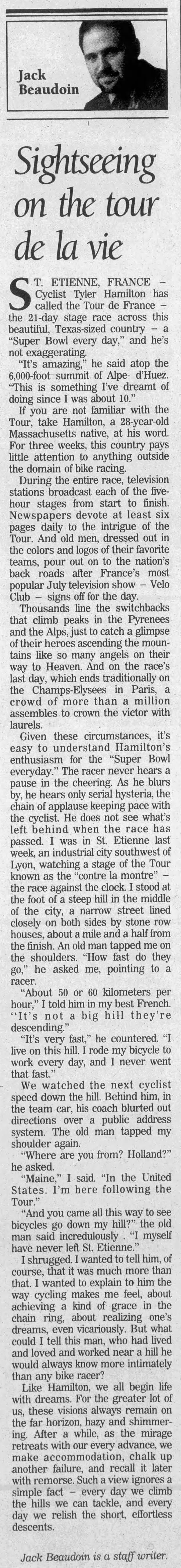 If you are not familiar with the Tour, take Hamilton, a 28-year-old Massachusetts native, at his word. For three weeks, this country pays little attention to anything outside the domain of bike racing.